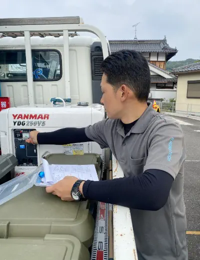 事務所に戻って、使った道具や資材を片付けます。その日の作業を振り返りながら、明日の準備や打ち合わせも行います。必要な書類もこのタイミングで作成し、1日が無事に終了です。