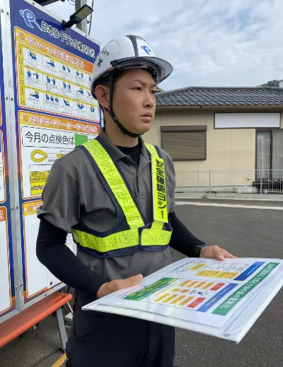 作業が始まったら、現場を回りながら進み具合や安全対策がきちんとできているかを確認します。特に午前中は機械をたくさん使うので、使い方や装備のチェックも念入りに行います。