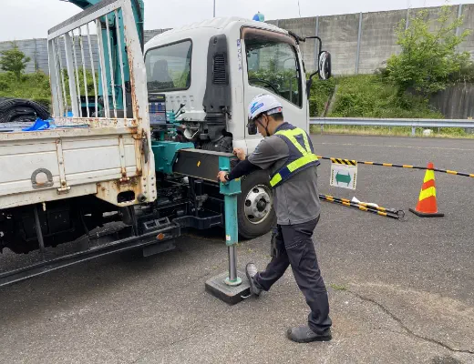 作業が終わったら、工事した場所の仕上がりを測ったり、ちゃんとできているかをチェックします。忘れ物がないか、積み荷が飛び出さないようになっているかなど、安全確認をしてから現場をあとにします。