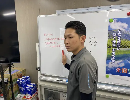 現場が分かれていて日常的に会えない方も多いですが、顔を合わせた時は皆さん気さくに話しかけてくれる、明るく親しみやすい職場です。資格取得や育児との両立支援など制度も整っていて、安心して長く働ける環境があります。休日に釣りに行くなど社内の交流も活発です。