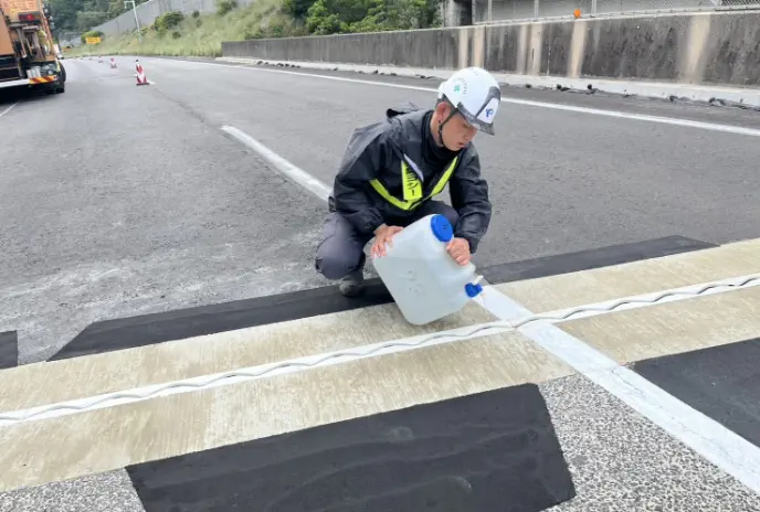 朝は少し早めに現場事務所に集合します。高速道路の工事は限られた時間の中で進める必要があるので、機械の点検や道具・資材の積み込みなどをしっかり準備してから現場に向かいます。