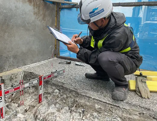 作業が終わったら、工事した場所の仕上がりを測ったり、ちゃんとできているかをチェックします。忘れ物がないか、積み荷が飛び出さないようになっているかなど、安全確認をしてから現場をあとにします。