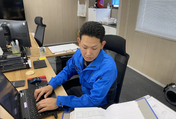 事務所に戻って、使った道具や資材を片付けます。その日の作業を振り返りながら、明日の準備や打ち合わせも行います。必要な書類もこのタイミングで作成し、1日が無事に終了です。